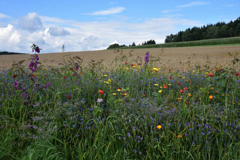 Ein Blumensteifen am Rande des Weizenfeldes für Bienen und Co. Und natürlich auch ein Blickfang für die Menschen.