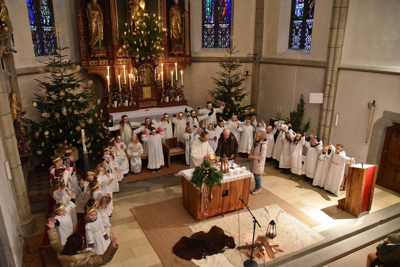 Traditionelle Kindermette am 24. Dezember 2025 mit Herbergsucher, Hirtenspiel, vielen Engerl, musikalischer Begleitung, ...