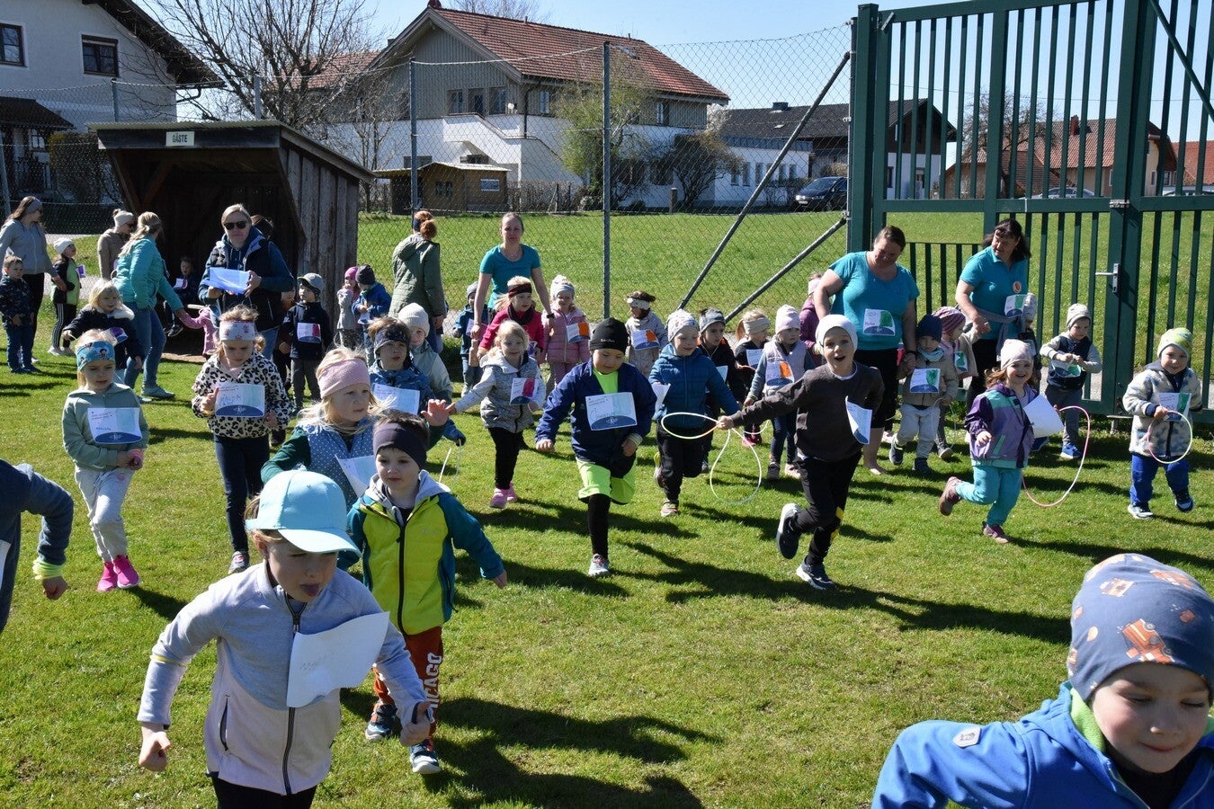 Unter dem Motto „Rollende Engel Run 26 – Kinder laufen für schwerkranke Kinder“ wurde das Sportplatzgelände in St. Roman am Mittwoch, den 8. April zum Schauplatz einer besonderen Laufaktion. Insgesamt 75 Kinder aus Krabbelstube und Kindergarten beteiligten sich mit großer Begeisterung an der Initiative des Vereins „Rollende Engel“.